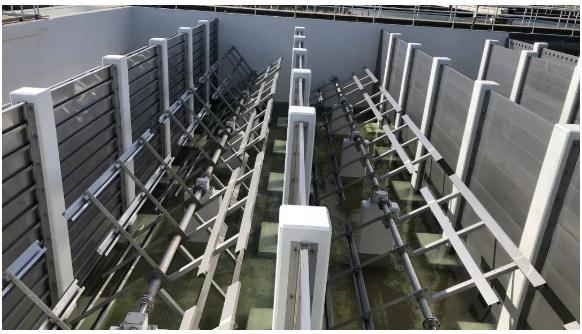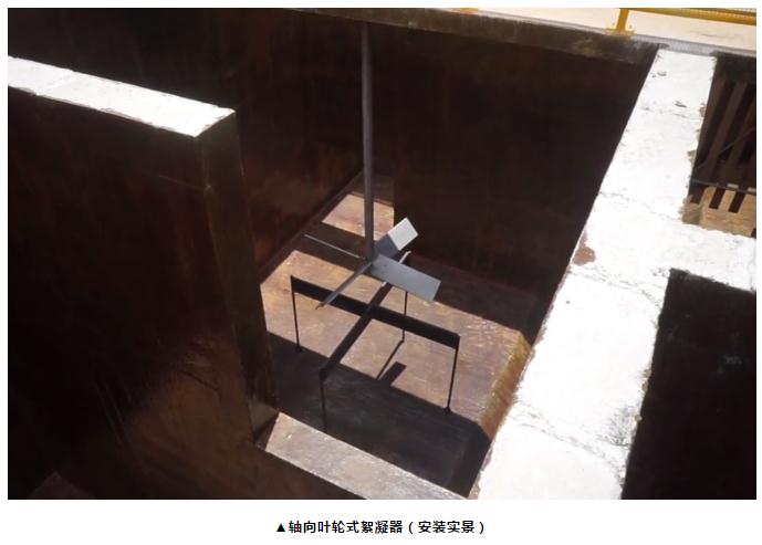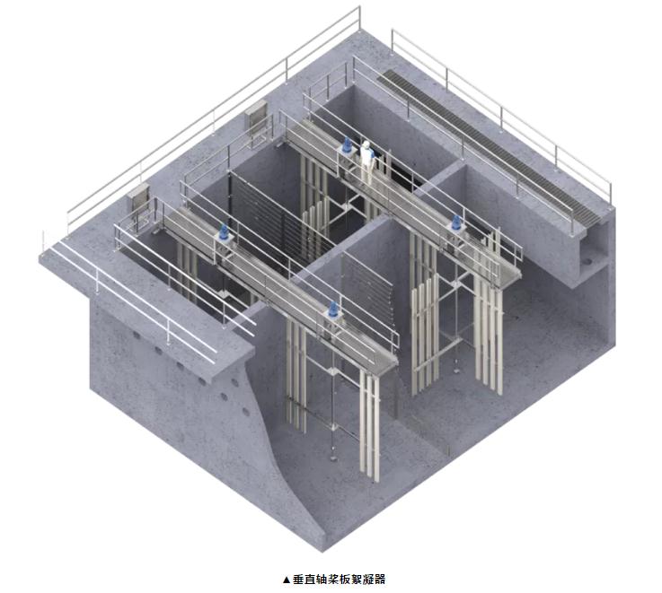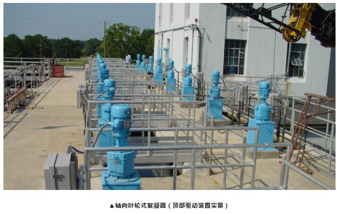 但缺點更突出:第一,葉輪式絮凝器用于產(chǎn)生充分的混合,并盡可能降低湍流。然而,與其他具有較高水流速度梯度的區(qū)域相比,更容易產(chǎn)生死角,而且發(fā)生水流旋轉(zhuǎn)。第二,葉輪式絮凝器產(chǎn)生非常高的葉尖速度,容易使絮凝物掉下來。一旦破碎,礬花就不會再聚集。第三,葉輪式絮凝器的每個葉輪都有一個齒輪箱,需要進行日常維護和考慮配電系統(tǒng)。每個齒輪箱必須支撐整個裝置的全部重量和扭矩輸出,而無需外部推力軸承。因此絮凝設施的預期壽命可能會降低。