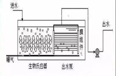 生物反應器中的混合液經循環泵增壓后打至膜組件的過濾端,在壓力作用下混合液中的液體透過膜,成為系統處理水;固形物、大分子物質等則被膜截留,隨濃縮液回流到生物反應器內。 一體式 把膜組件置于生物反應器內部。進水進入膜--生物反應器,其中的大部分污染物被混合液中的活性污泥去除,再在外壓作用下由膜過濾出水。