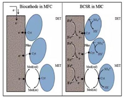 微生物腐蝕 微生物腐蝕是一種特殊類型的腐蝕,它是由于微生物的直接或間接地參加了腐蝕過程所起的金屬毀壞作用。微生物腐蝕一般不單獨存在,往往總是和電化學腐蝕同時發生的,兩者很難截然分開。 引起腐蝕的微生物一般為細菌及真菌,但也有藻類及原生動物等,在大多數場合下都可看作是各種細菌共同作用而造成危害的。微生物影響腐蝕主要是通過使電極電位和濃差電池發生變化而間接參與腐蝕作用這條途徑,其方式大體分以下幾類: 1.由于細菌繁殖所形成的粘泥沉積在金屬表面,破壞了保護膜,構成局部電池; 2.由細菌代謝作用引起氧和其它化合物的消耗,形成通氣差電池和濃差電池,在局部電池中發生去極化作用; 3.由細菌代謝產物的作用起的; (1)影響pH值或酸度; (2)影響氧化還原電位; (3)使環境的化學狀況發生變化(包括氨、硝酸鹽、亞硝酸鹽、硫酸鹽、硫化物等其他離子,在應中起催化作用); (4)生成或消耗氧而影響氧的濃度。 微生物腐蝕是一種局部腐蝕,而且幾乎都有點蝕的跡象,其危害是極其嚴重的。(注:文章來源于慧聰360) |