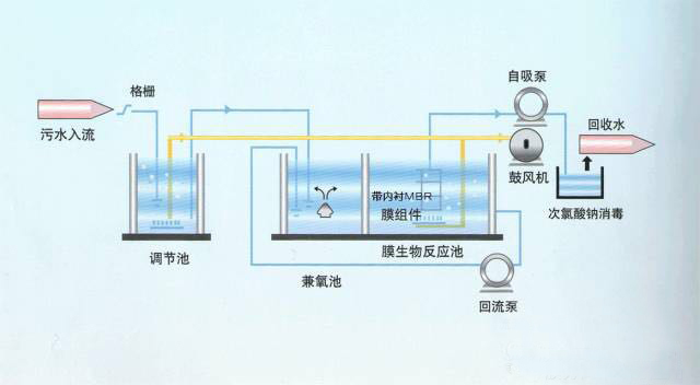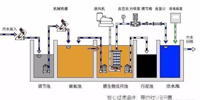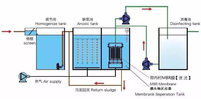 下面就是由小編收集的一整套(12幅)MBR膜處理典型工藝,應該是以處理生活/市政類污水為主的 |