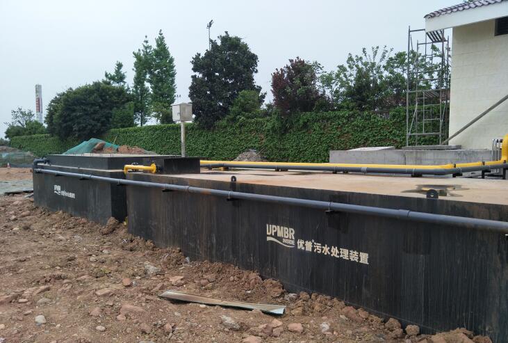 MBR地埋式一體化污水處理設備,是活性污泥生物處理技術與膜分離技術相結合的另一種新工藝。用到MBR平板膜替換沉淀池,與此同時利用膜的基本特征,使活性污泥不隨出水溜走,在生化池中生成超高濃度的活性污泥濃度,使污染物分解的完全,因而出水進水水質優(yōu)異、穩(wěn)定,出水細菌、懸浮物和濁度接近于零。