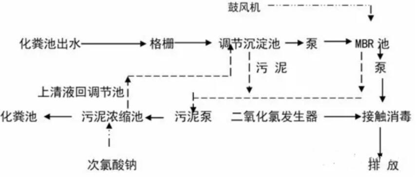 2、主要處理單元及設備描述 (1)格柵 醫院污水中含有大量較大顆粒的懸浮物和漂浮物,格柵的作用就是截留并去除上述污物,對水泵及后續處理單元起保護作用。格柵采用回轉式格柵除污機。該格柵除污機的主要特點為: 結構緊湊、電氣控制簡單,便于實現自動化; 幾乎全部零件由不銹鋼制成,具有足夠的耐腐蝕性能和強度; 采用防水電機,電機絕緣性能好; 工作性能穩定,運轉平穩。運轉噪音小; 除污動作連續、排渣干凈、分離效果高。 (2)沉淀調節池 污水經格柵攔截大顆粒雜物后自流入初次沉淀池,排出的污泥進入污泥濃縮池進行濃縮。污水自流入調節池調節水質水量,調節池水力停留時間設計為5h。 (3)提升泵 提升泵的作用是把污水從調節池中定量的提升至MBR池中。 (4)MBR池 膜生物反應器(Membrane Bio-reactor)是膜分離技術和生物技術的有機結合。使水力停留時間(HRT)和污泥停留時間(STR)完全分離。其高效的固液分離能力使出水水質良好,懸浮物和濁度接近于零,并可截留大腸菌等生物性污染物。 MBR技術特點: 由于膜的分離作用,不必設立沉淀、過濾等其他固液分離設備。高效的固液分離將污水中的懸浮物質、膠體物質、生物單元的微生物菌群與已凈化的水分開。 可使生物處理單元微生物量維持在高濃度,使容積負荷大大提高,同時膜分離的高效性,使處理單元水力停留時間大大縮短,生物反應器的占地面積減少。系統占地僅為傳統方法的三分之一。 膜生物反應器可以濾除細菌、病毒等有害生物,可顯著節省加藥消毒所帶來的長期運行費用。 膜的高效截留作用,使微生物完全截留在反應器內,實現反應器水力停留時間(HRT)和污泥齡(SRT)的完全分離,運行控制靈活穩定。 防止各種微生物菌群的流失,有利于生長速度緩慢的細菌(硝化細菌等)的生長,使一些大分子難降解有機物停留時間長,有利于它們的分解,從而使系統中各種代謝過程順利進行。 膜生物反應器內生物污泥在運行中可以達到動態平衡,幾乎無剩余污泥排放,污泥處理費用低。