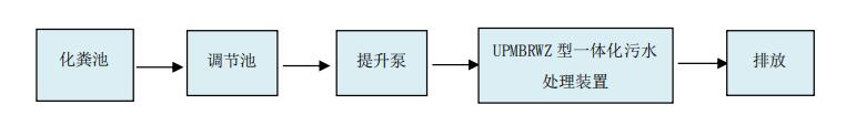 針對鄉鎮生活污水的特點,并綜合考慮投資、場地條件、運行費用、維護管理方便等因素,建議采用AO+MBR膜處理工藝,為一體化設備(地面)。工藝具體流程:化糞池+缺氧+好氧+MBR膜池+除磷+紫外消毒。其中缺氧、MBR膜法、消毒集于一體化設備箱體中,設備安裝于地面,設備采用全自動化控制,保持設備穩定運行。 鄉鎮生活污水處理設備工藝流程